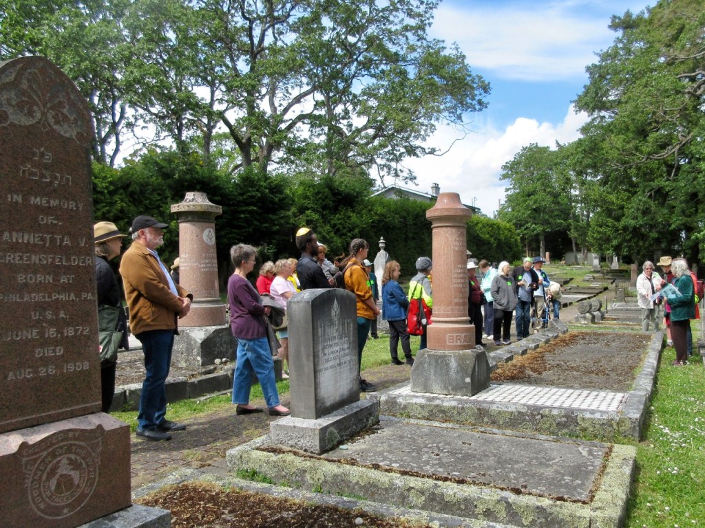 Among those buried in the Jewish Cemetery is Samuel Davies Schultz, ace baseball player on record as pitching the first no-hitter in BC, journalist, composer, lawyer and Canada’s first Jewish judge. Other notable graves include a family plot for the Oppenheimer family in which Vancouver’s early Mayor David Oppenheimer’s first wife and his brother and business partner Godfrey were interred. H.E. Levy proprietor of the first gourmet restaurant in the Pacific Northwest, and most of his family are also buried in this cemetery.