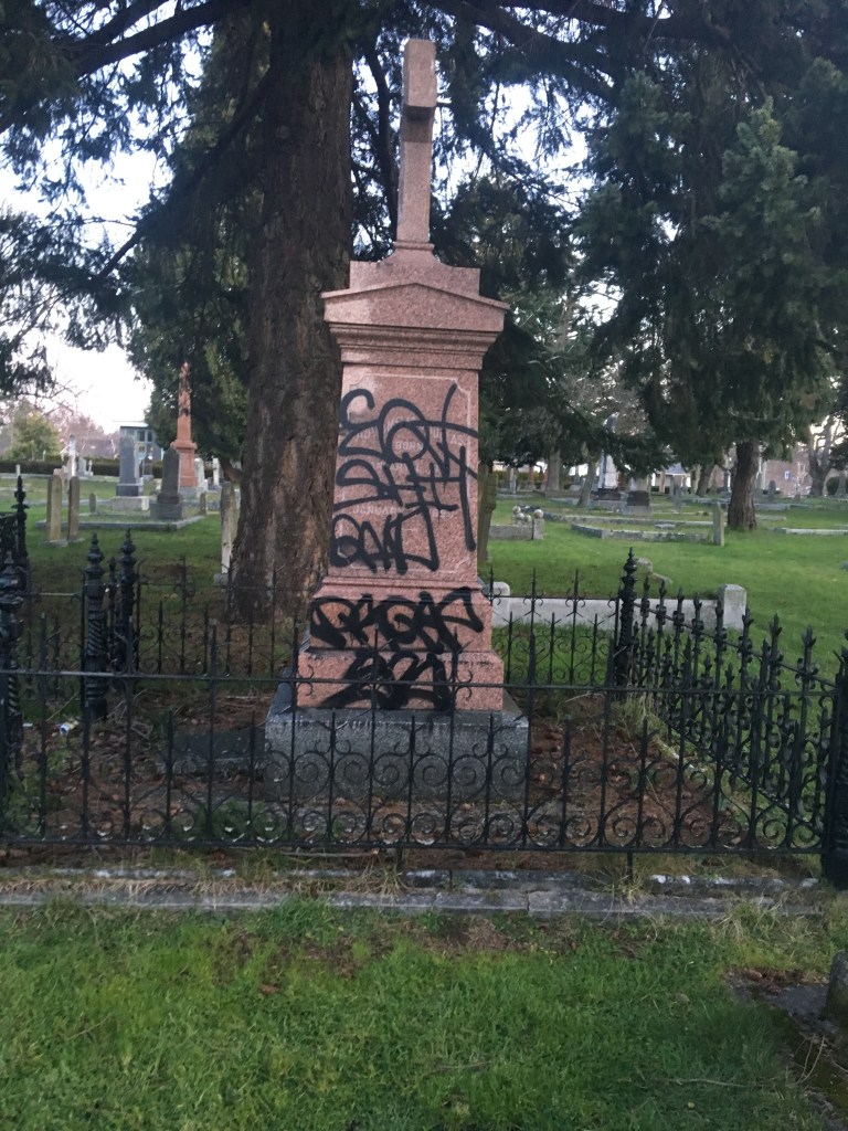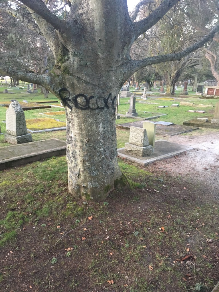 I will never understand the mentality of people who hide in the shadows and vandalize public and private property. I have to ask, to what end? It is just scentless! This set of pictures is from Ross Bay Cemetery February 19, 2020 at the grave of Sir James Douglas.
