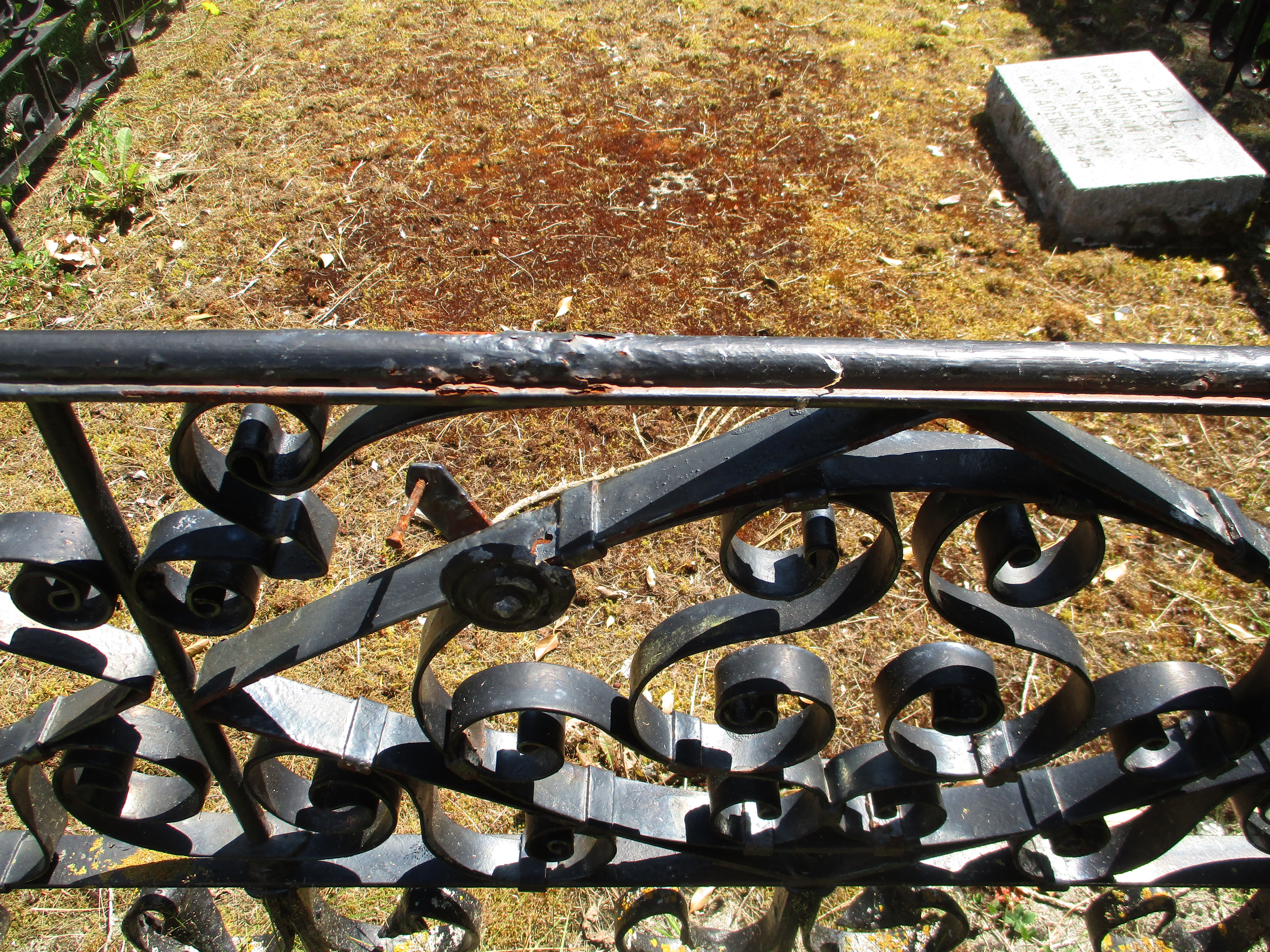 This summer we have taken on the restoration of the Parker-Ball fence (F27W21). In 2003/2004 the fence was totally removed, rebuilt and painted as a joint project with the Island Blacksmith Society. The last 16 years have not been kind to the iron fence and rust had started to show in many spots. It was decided that the best way to preserve it was to have it sandblasted (with glass), primed and repainted. Our hope is that this intervention will preserve it for many years to come.