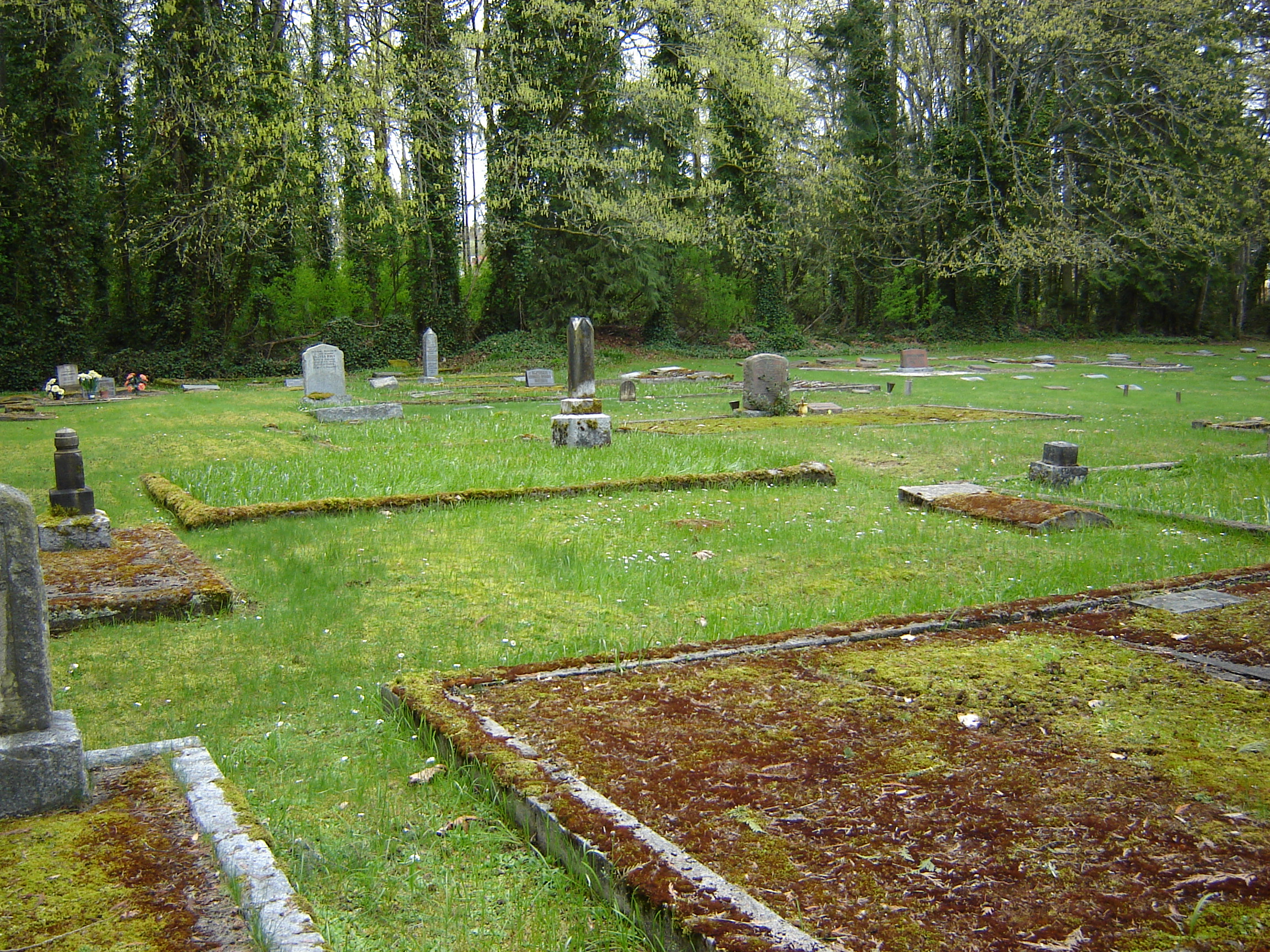 Shady Creek Cemetery is a non-denominational community cemetery that has served Saanich since about 1894. In this year, Robert John who owned a 250 acre farm running along East Saanich Road from Shady Creek to Stelly’s Cross Road, is reputed to have donated the land for the cemetery. It is believed that the first burial was one of his young children. The burial ground eventually became known as “Shady Creek” due to the fact that the second Shady Creek Methodist Church was built on the adjoining land. This property was also donated by Mr. John. The cemetery’s location beside the church naturally makes it appear that the cemetery belongs to the church, but it does not. In fact it is the smallest operating cemetery in the greater Victoria area.