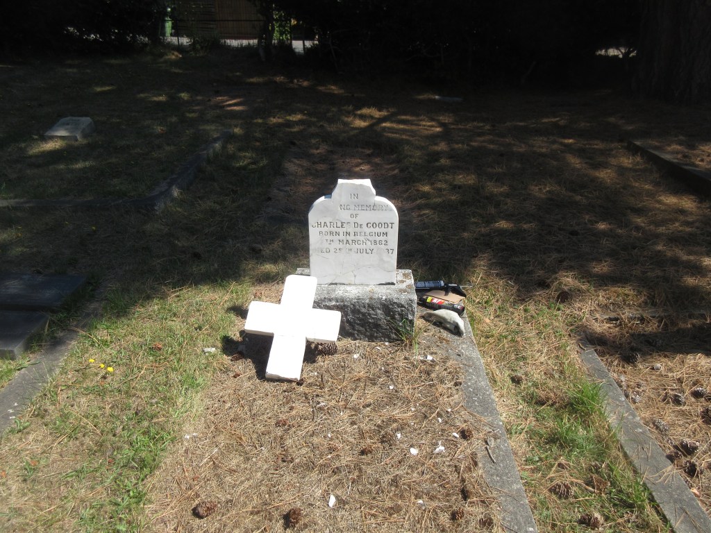 This monument to Charles DeGOODT will never be the same, nor will it look like it did before being vandalized but at least it will deliver it’s message of remembrance for a few more years….we hope. Our moto should be “never say never”