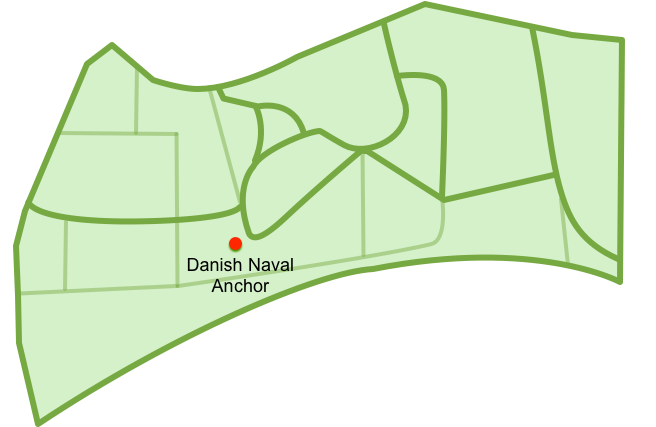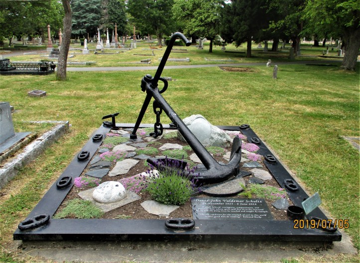 An authentic Danish naval anchor was placed on this grave in the 1990s. It marks the grave of the Schultz family who had lived for many years in the Danish Virgin Islands. The family had a long connection to the sea in Denmark.