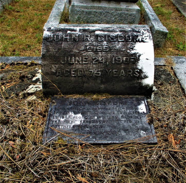 John Giscome’s marble tombstone gave little information about him. In the 1980s the Victoria Black People’s Society restored his grave and put a plaque on it explaining more about his interesting life.