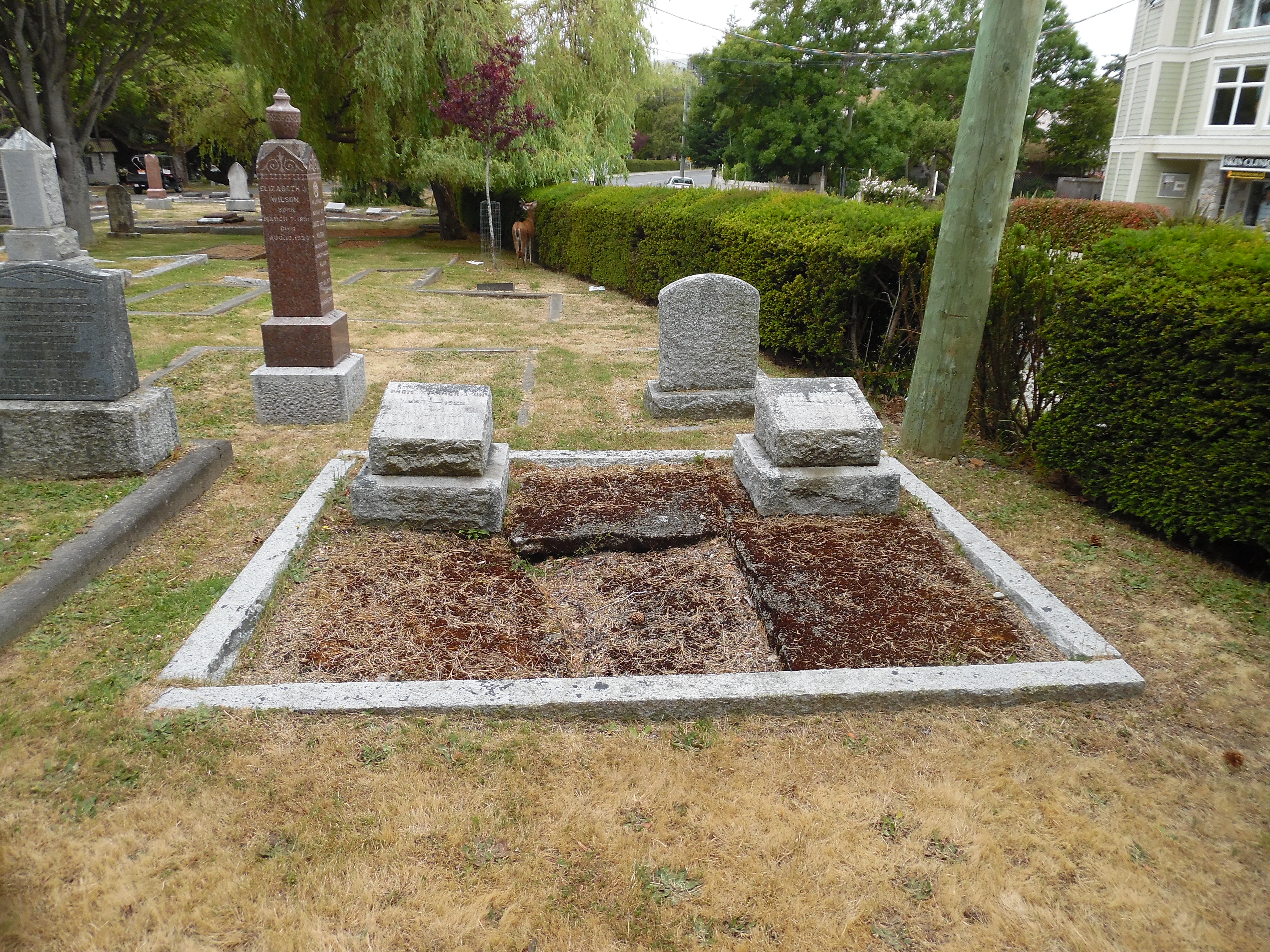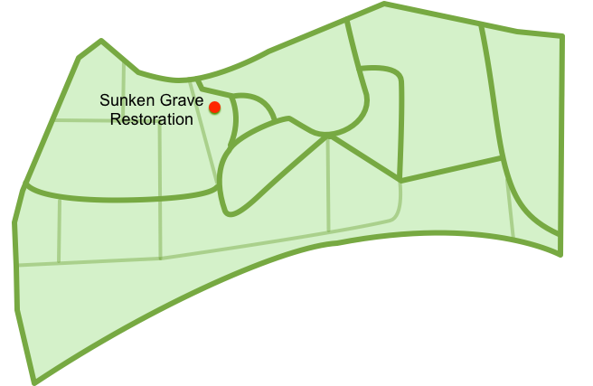 Ongoing maintenance is needed at an old cemetery such Ross Bay Cemetery. Sunken graves happen when a coffin decomposes and the soil above sinks down to fill the space. More soil is put into the grave and tombstones and curbing sometimes need to be straightened if they have tipped over.